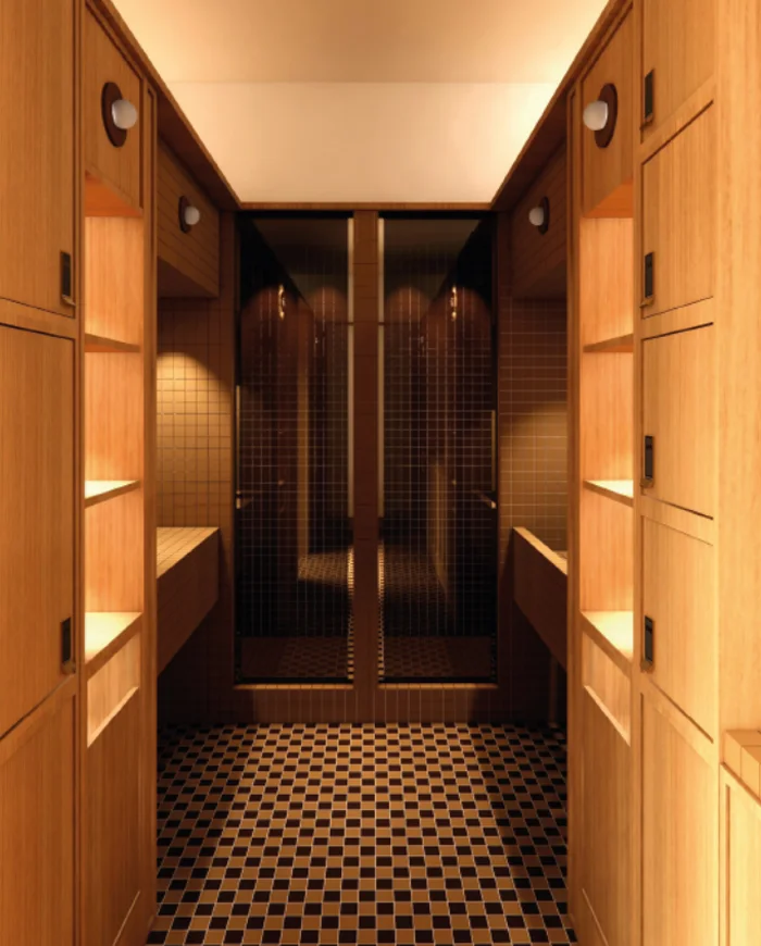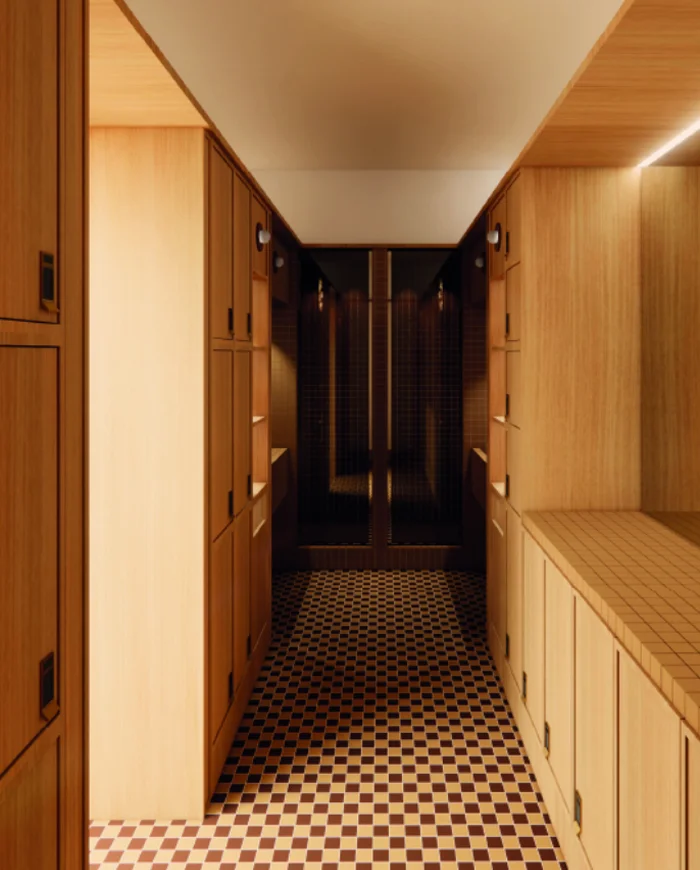 Elle accueille un mini-vestiaire, pensé comme une parenthèse avant et après les cours. On y prend le temps de découvrir les pièces, de toucher les matières des vêtements, de sentir les parfums des cosmétiques, de feuilleter les livres, comme on le ferait à la maison.